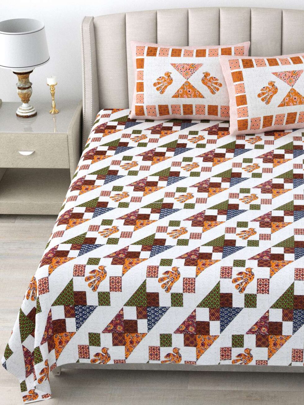 100% Pure Cotton Traditional Printed Bedsheet for Double Bed King Size Bedsheet with 2 Pillow Covers