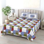 100% Pure Cotton Traditional Printed Bedsheet for Double Bed King Size Bedsheet with 2 Pillow Covers