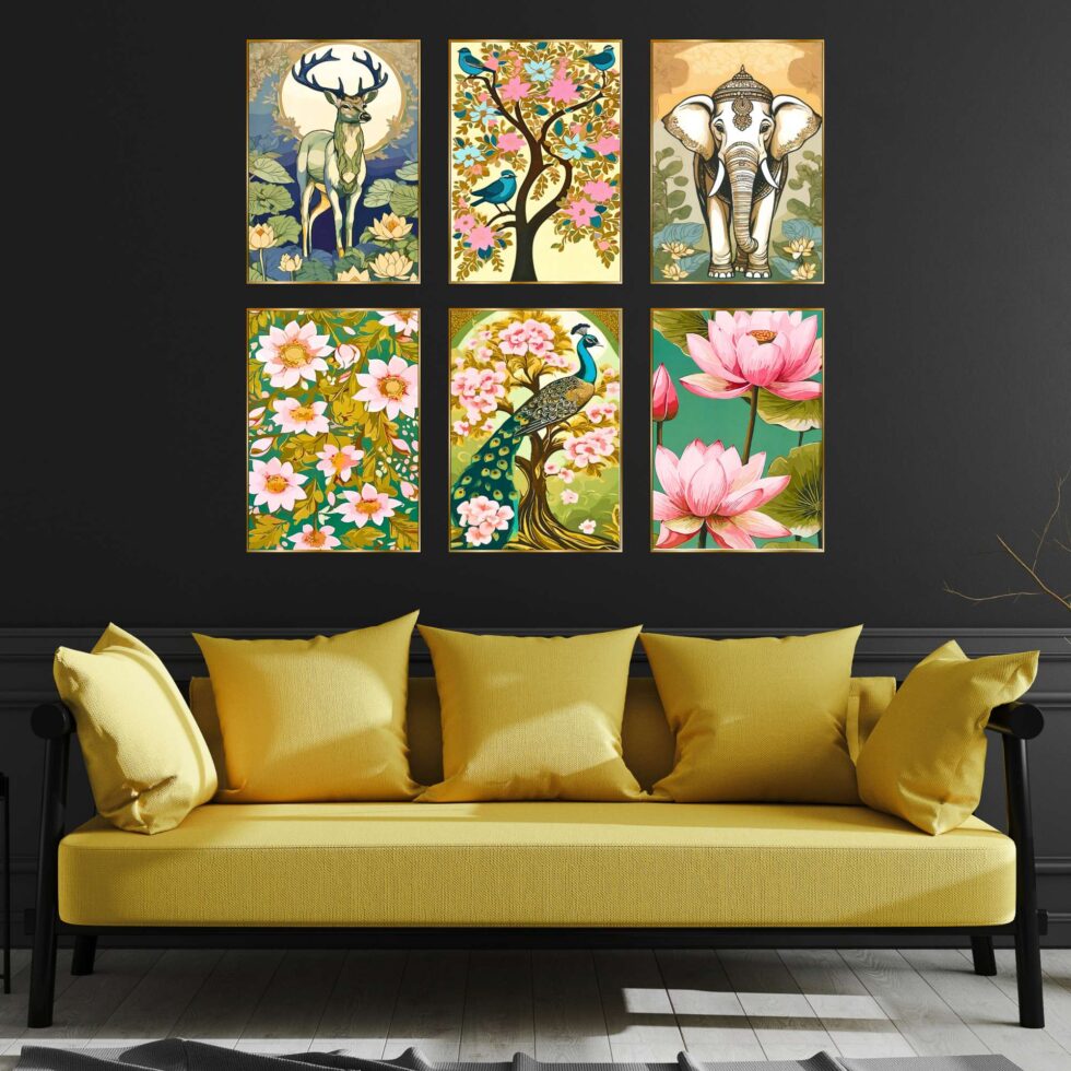 Set of Six Wall Paintings for Wall Dacoration Golden Framed Wall Paintings for Living Room & Bedroom Wall Art for Home Decoration & Office Wall Décor (13×10 inch CH-GD6-7)